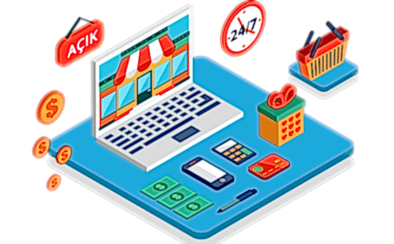 E-ticaret çözümlerimiz ile 7 gün 24 saat açık mağazanız olsun. Sattığınız ürün ve hizmetleri daha fazla kişiye istediğiniz zaman satabilirsiniz. E-ticaret sitesi kurulumu ile anahtar teslim online mağazanızı hazır edebiliriz. Tüm ürünlerinizin yer aldığı, isterseniz n11, Gitti Gidiyor, Trendyol gibi pazar yeri ile entegre, kolay, kullanışlı, mobil uyumlu siteniz satışa hazır halde teslim edilir.
